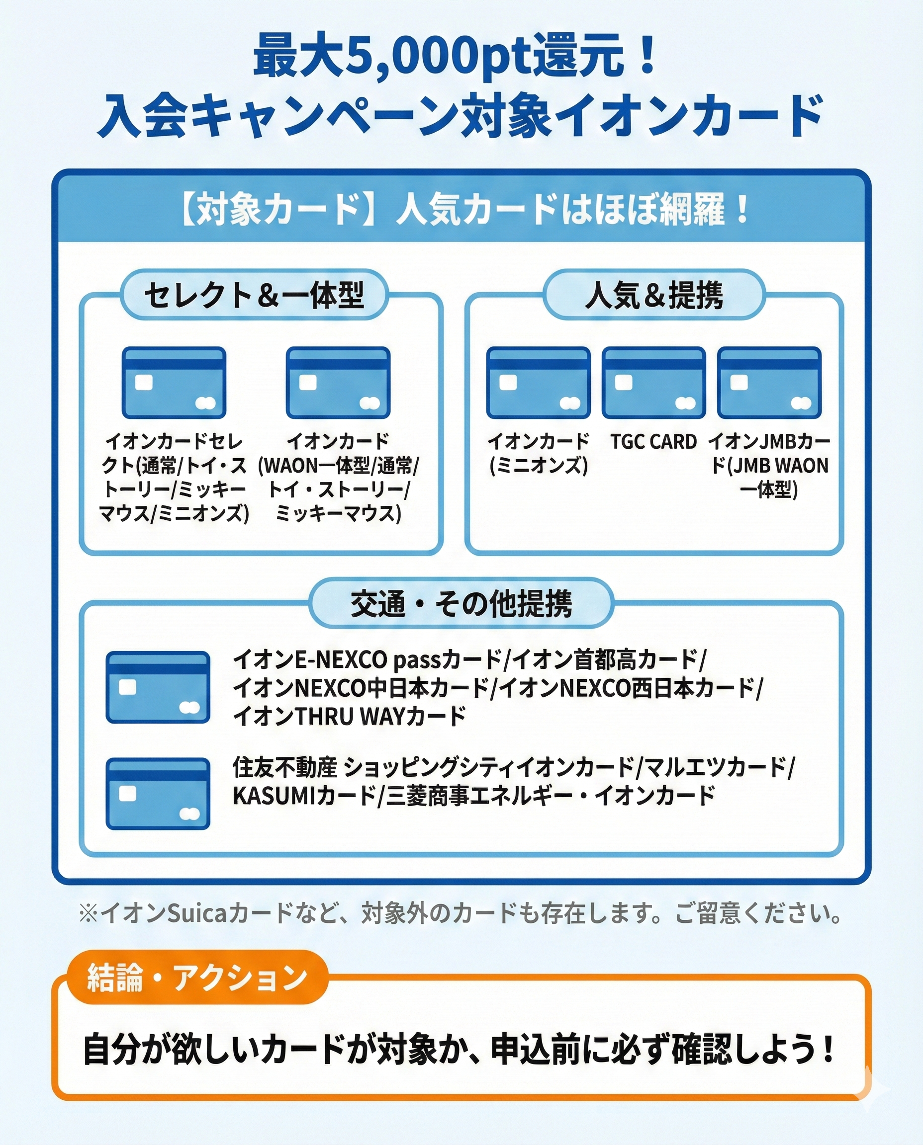 念のため、自分が発行したいイオンカードがキャンペーンの対象か、確認してから申し込もう。