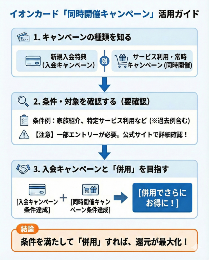 過去に同じ種類のイオンカードを持っていた人は、入会キャンペーンが適用されない場合があることに注意しよう。