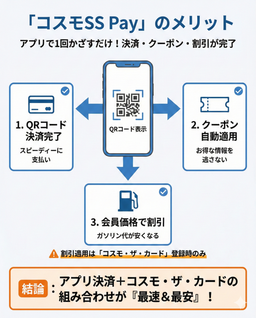 コスモSS Payは、「【コスモの公式】アプリ」に搭載されている決済機能である。