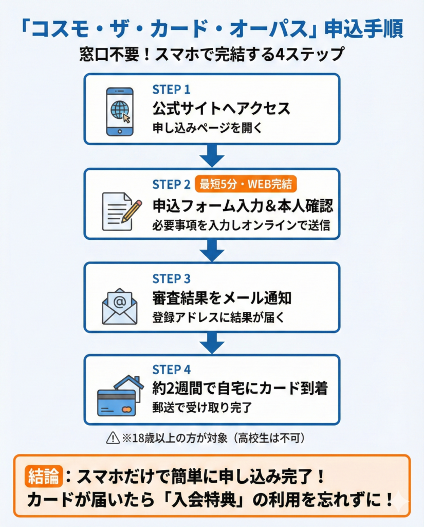 コスモ・ザ・カード・オーパスの申し込みにおける流れは以下の通りだ。