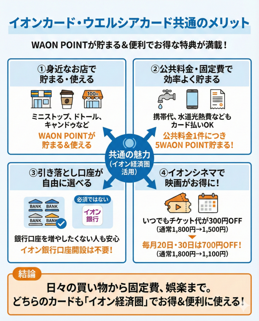 イオンカード(WAON一体型)とウエルシアカードに共通した特徴とメリット
