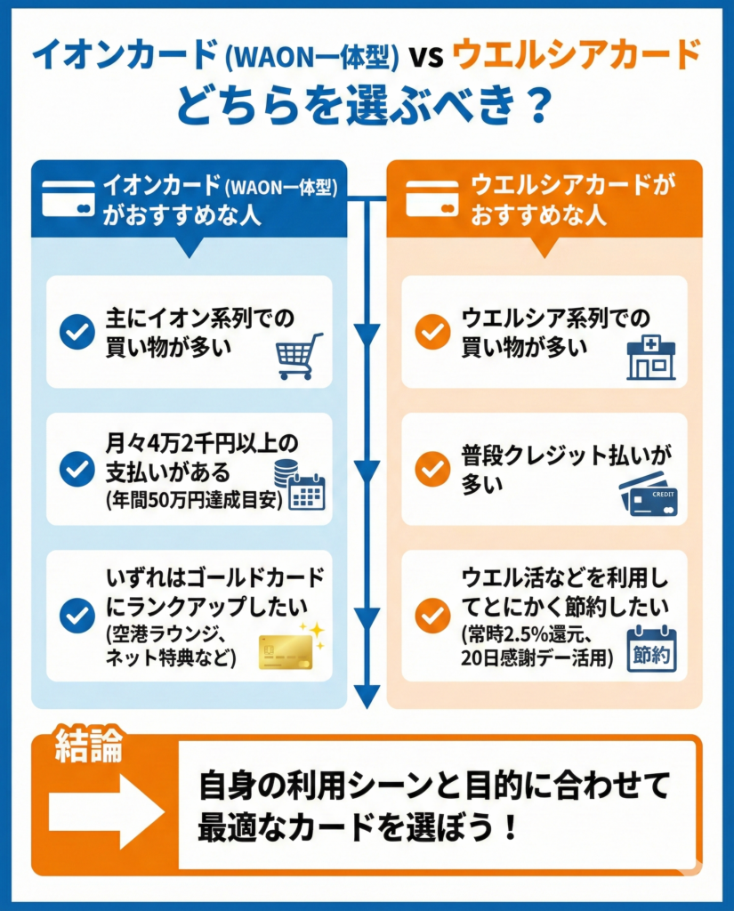 イオンカード(WAON一体型)とウエルシアカードはどちらを選ぶべきか