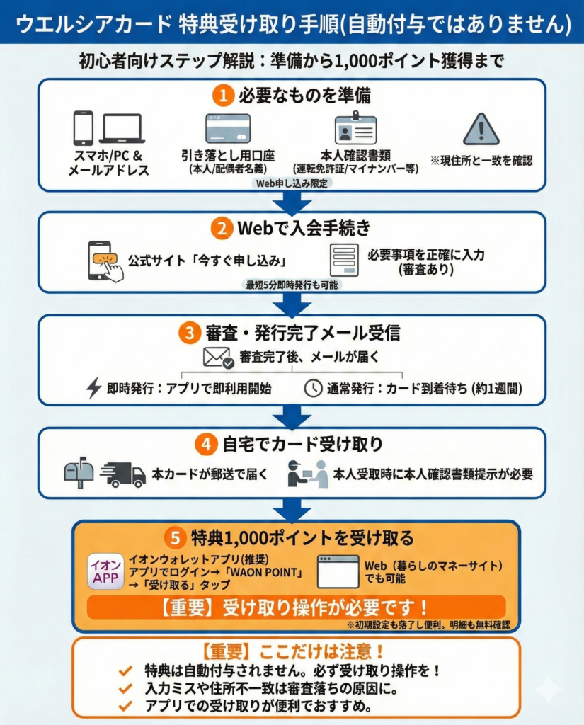 ウエルシアカードのご入会特典は、受取り手続きが必要だ。