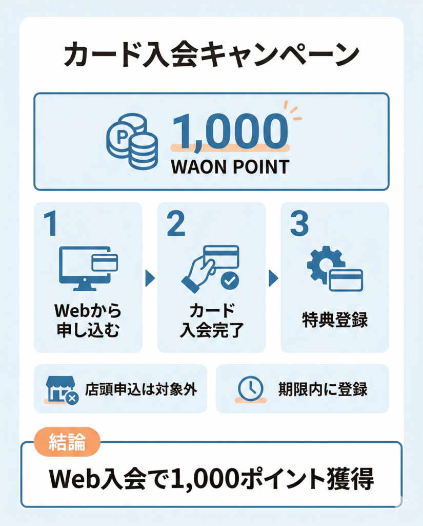 | ①Webより新規入会 | ー | 1,000WAON POINT |