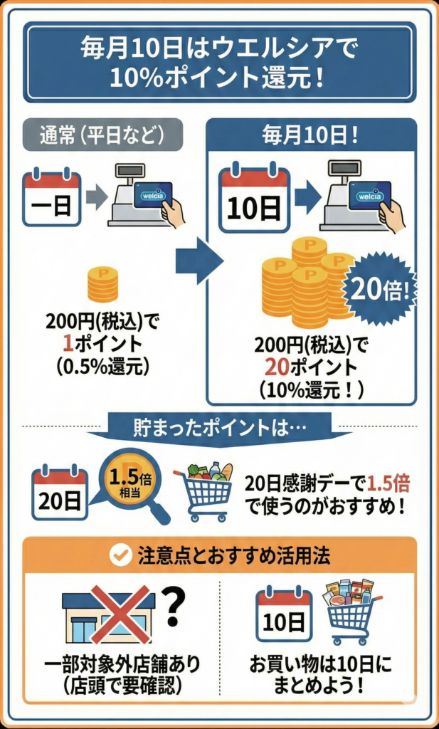 普段ウエルシアでお買い物する人は、毎月10日の特典も確認しておきたい。