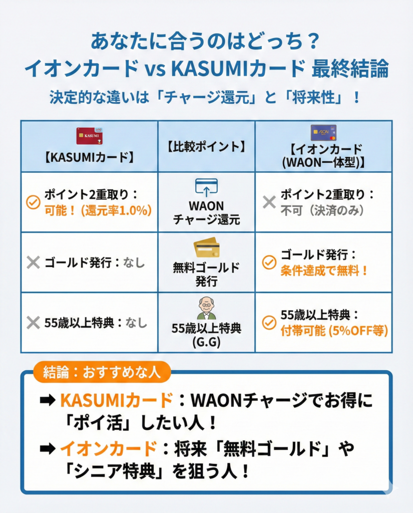 【結論】「KASUMIカード」と「イオンカード(WAON一体型)」おすすめはどっち?