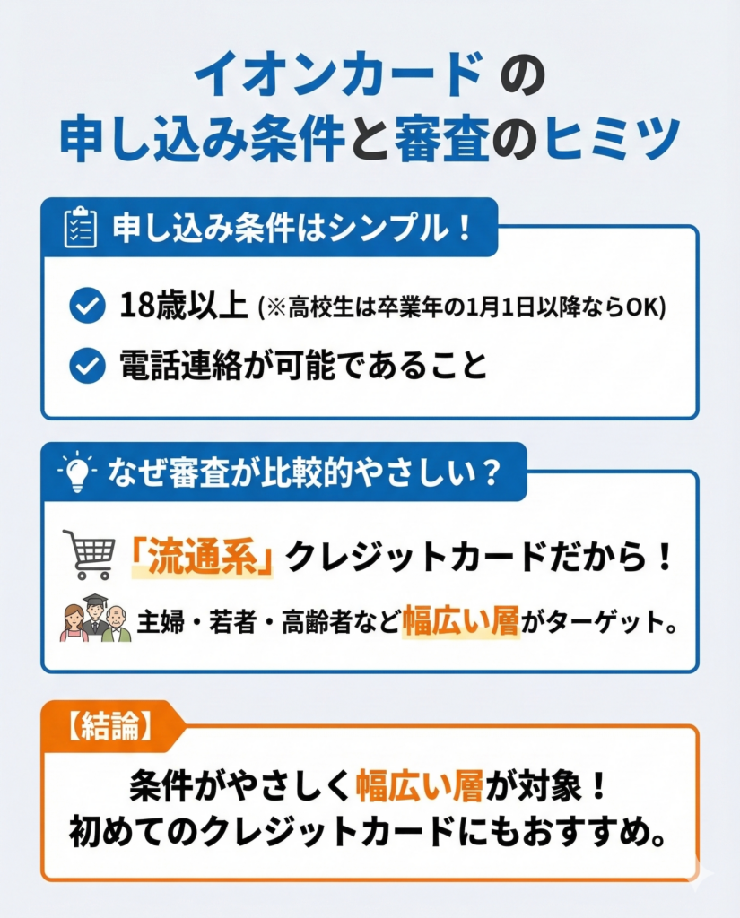 そこでここでは、イオンカードの申し込み条件や審査のポイントなどを詳しく解説していく。