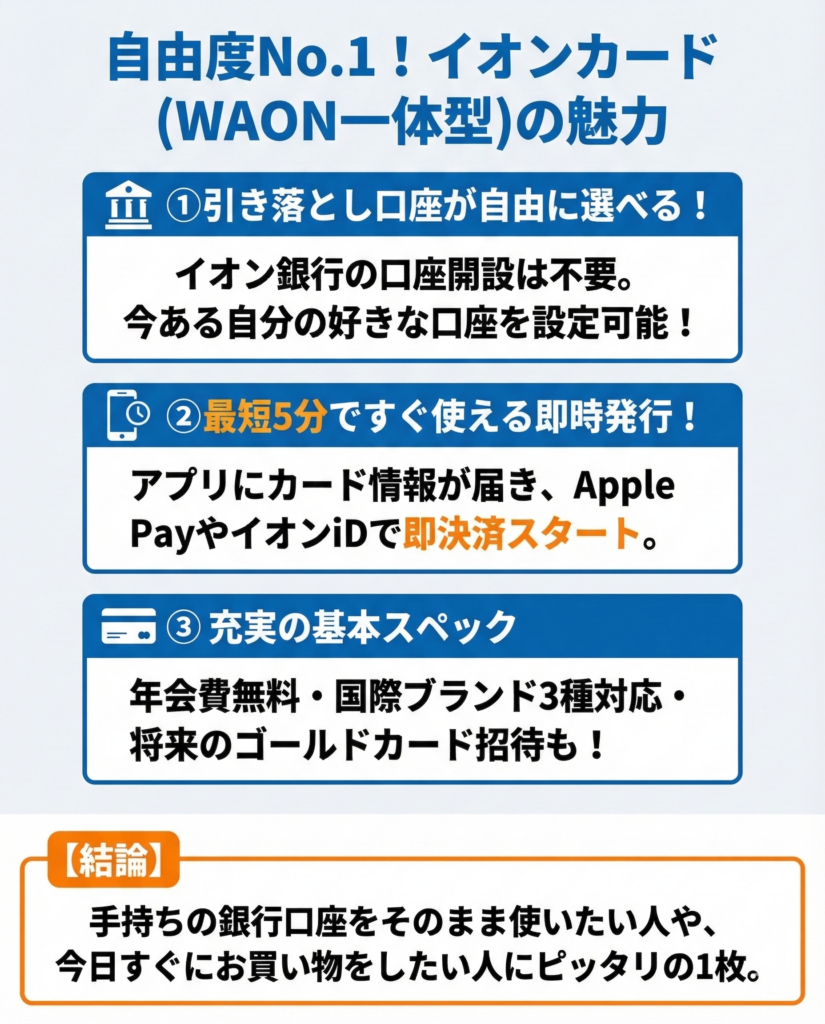 イオンカード(WAON一体型)の主な特徴を紹介する。