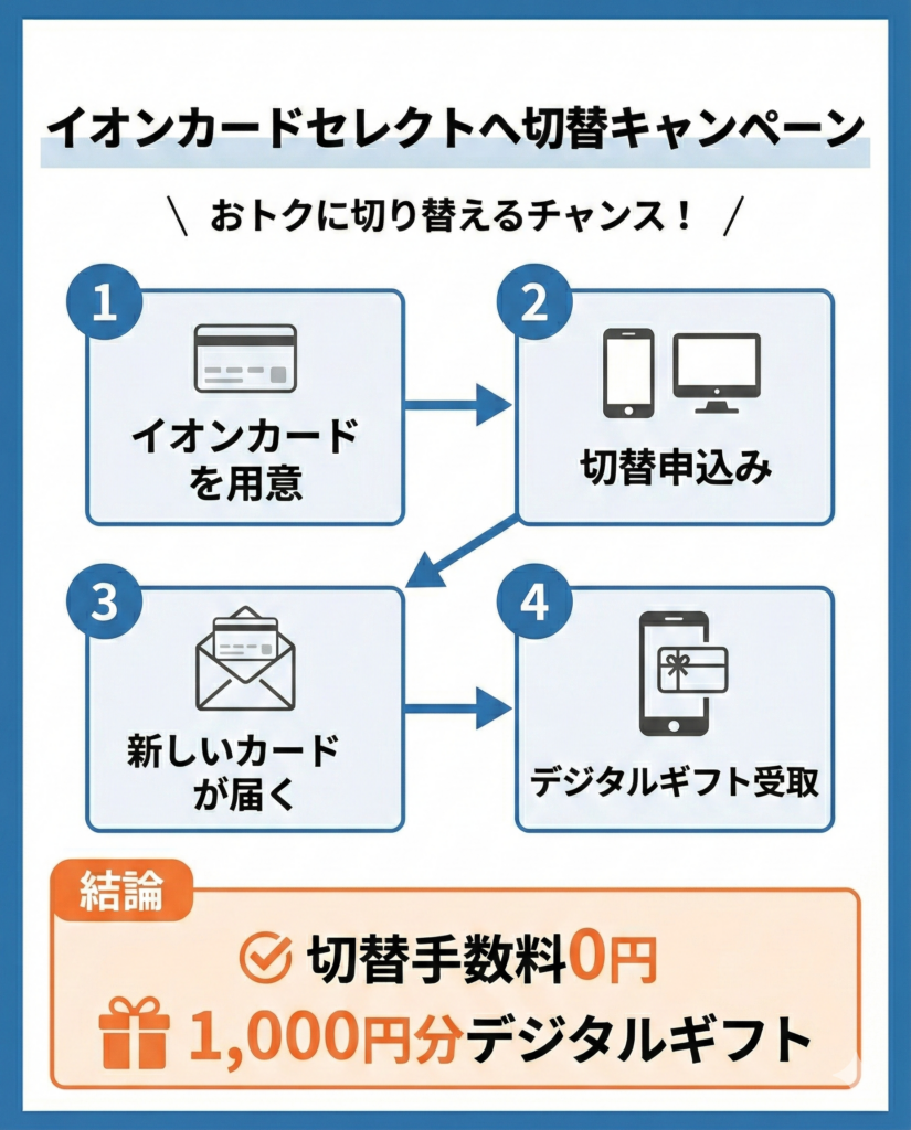 | イオンカードセレクト切替キャンペーン | 1,000円分のデジタルギフトをプレゼント | 全員 |
