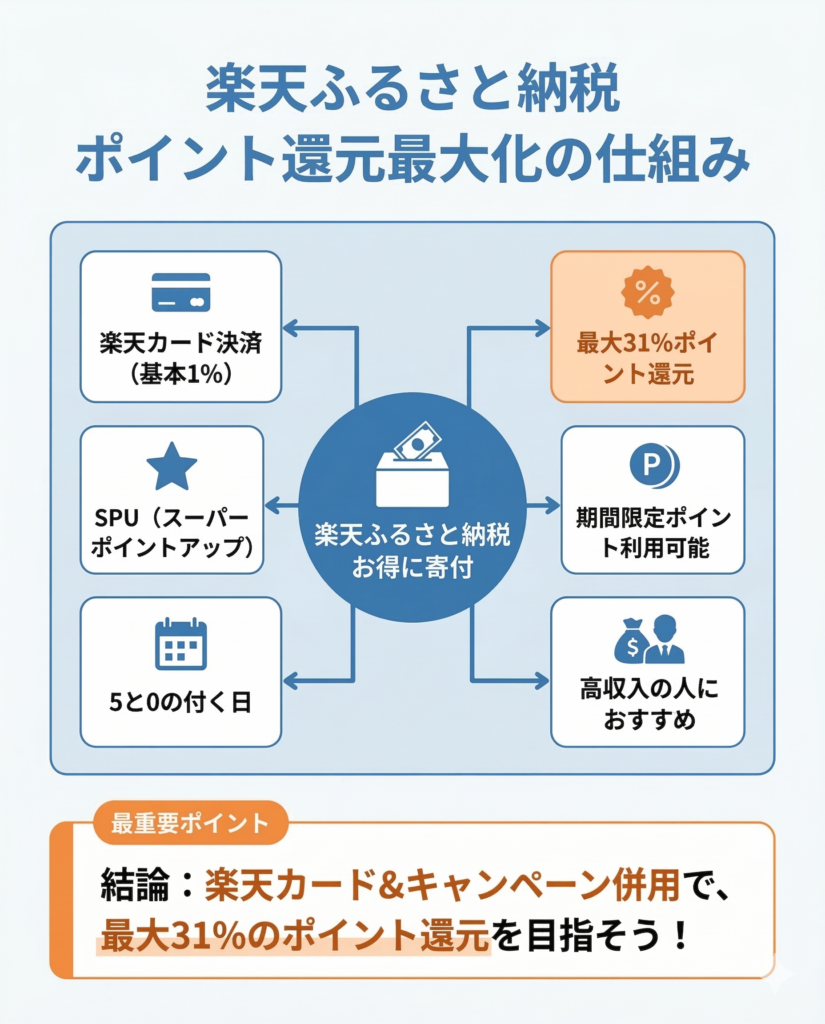 ふるさと納税は金額が大きいので、ポイント還元率を上げたい人や収入の多い人におすすめだ。