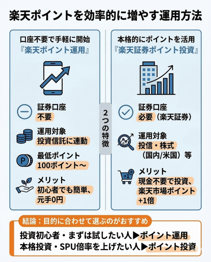 ポイントの還元率を上げるには、SPUやキャンペーン、5と0の付く日の利用、カードのグレードアップやポイント運用も効果的だ。