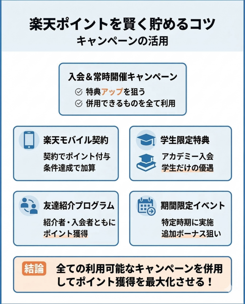 利用条件を満たすキャンペーンを活用することで、効率よくポイントを貯めやすくなる。