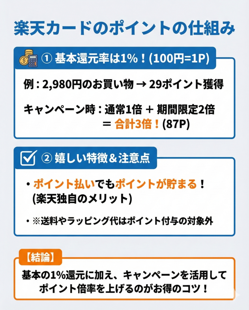 ここまでで楽天カードのポイントの仕組みについて理解できたと思う。