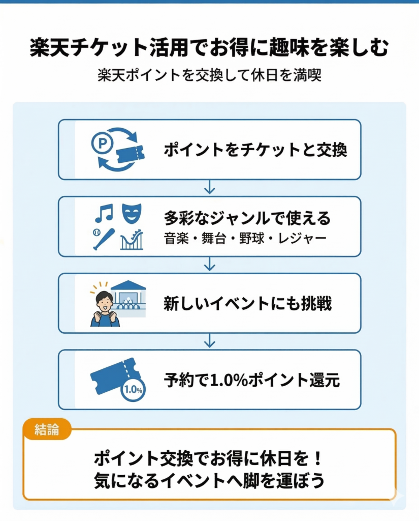 音楽・舞台・野球・レジャーが趣味という人は、チケット代に楽天ポイントを充てる使い方も考えられる。