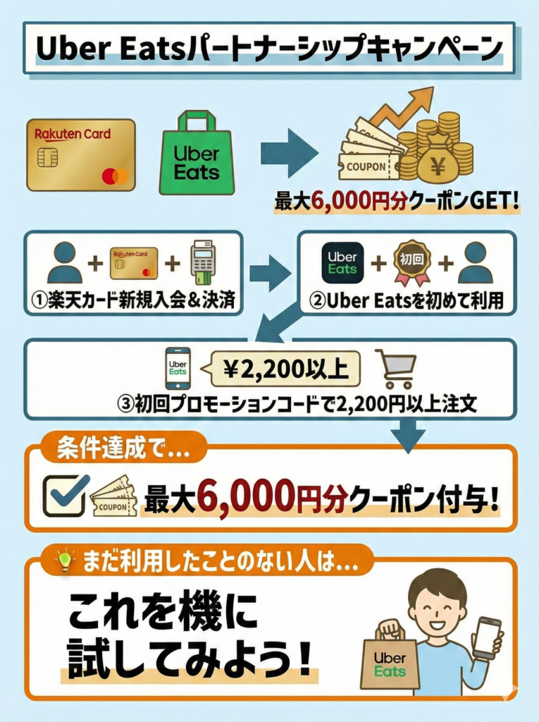 Uber Eatsパートナーシップキャンペーンも、実施の有無や特典内容を申込前に確認したい。