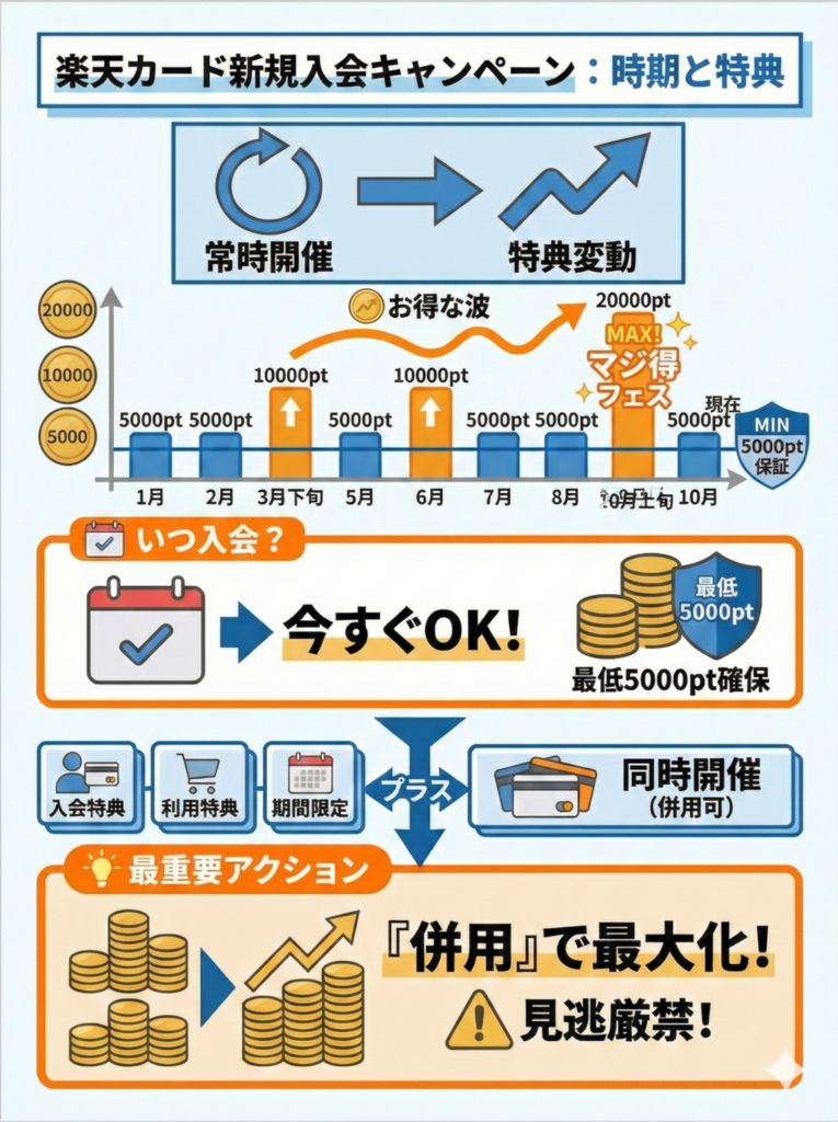 楽天カードの新規入会キャンペーンの開催時期は?