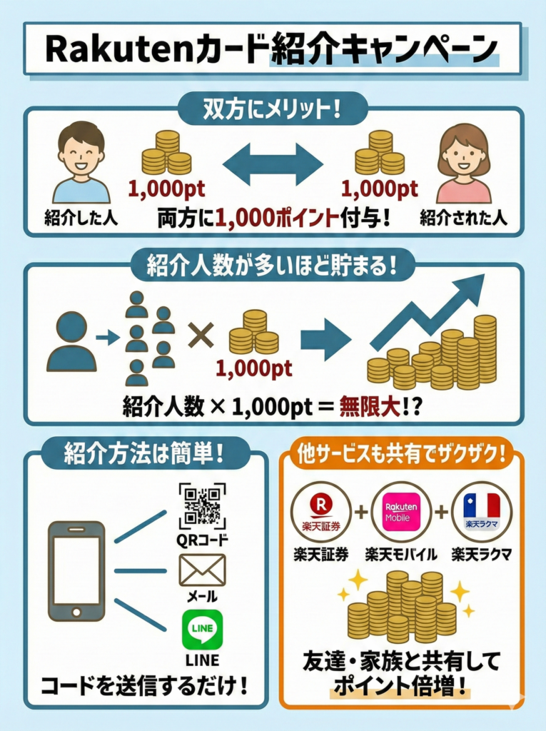 楽天カードでは、紹介キャンペーンが案内されている。