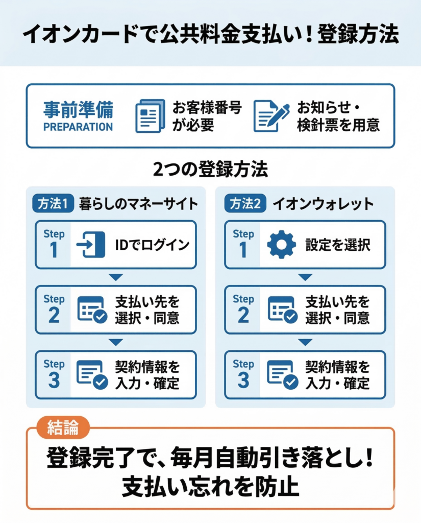 この記事では、イオンカードで公共料金を支払うメリットや、気になる手続きのポイントを分かりやすく解説します。