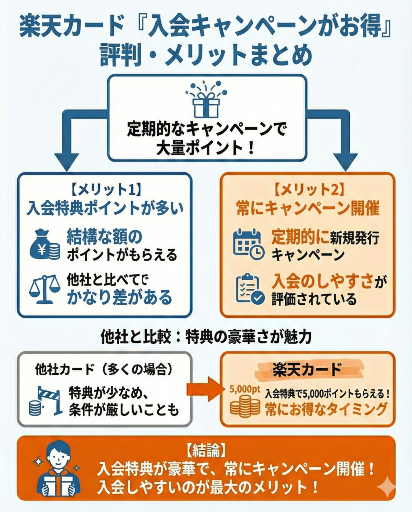 楽天カードでは、定期的に入会キャンペーンを行っているが、そのキャンペーンに関する口コミも多かった。