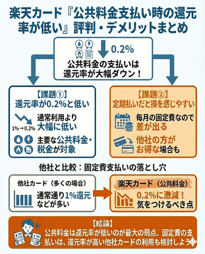 水道光熱費などの公共料金をはじめ、税金や国民年金保険料のポイント 還元率が0.2%と低い点です。