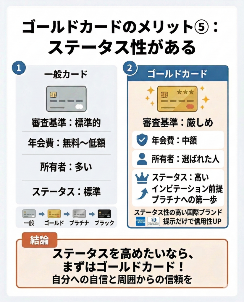 ゴールドカードには、一般カードよりも申し込み条件が高めに設定されている商品があり、ステータス性を重視して選ばれることがあります。