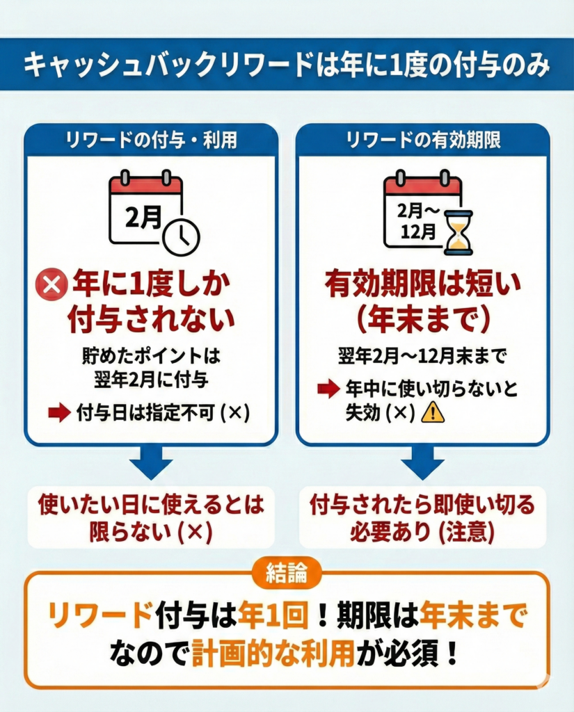 キャッシュバックリワードは年に1度しか付与されない