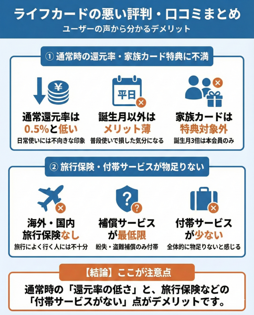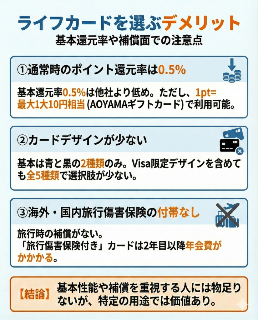 ライフカードの特徴や口コミを元にどのようなデメリットがあるのか解説します。