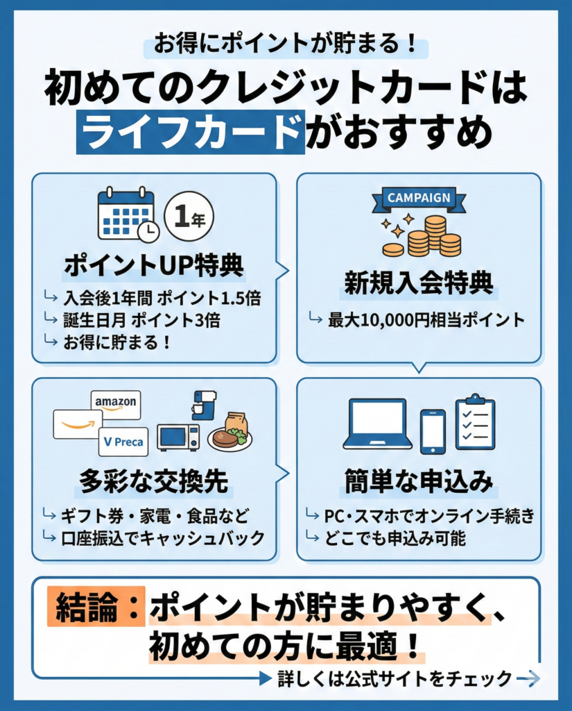 ライフカードは、ポイントプログラムや入会プログラムを活用しやすいクレジットカードです。