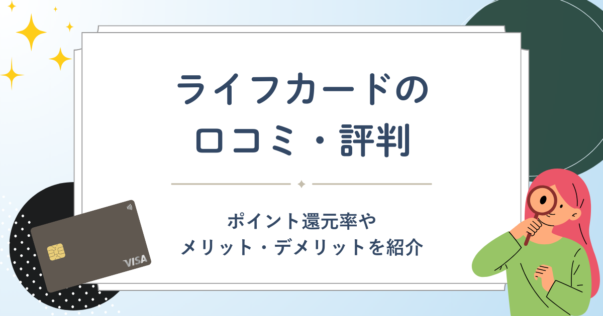 本記事では、ライフカードに関する口コミや評判を紹介します。口コミや公式情報をもとに、メリット・デメリット、おすすめするポイントなども解説するので、ぜひ参考にしてください。