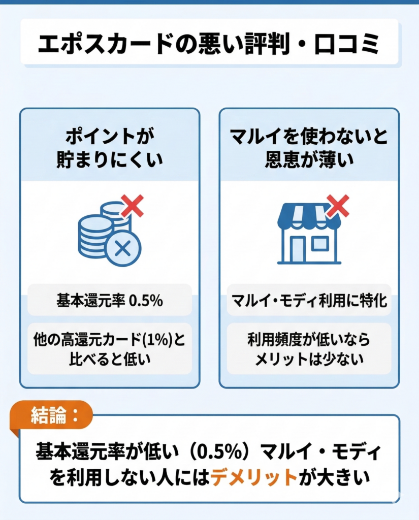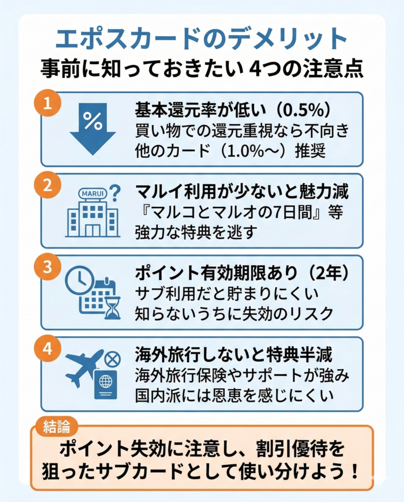 エポスカードのデメリットとしては次のような点が挙げられます。