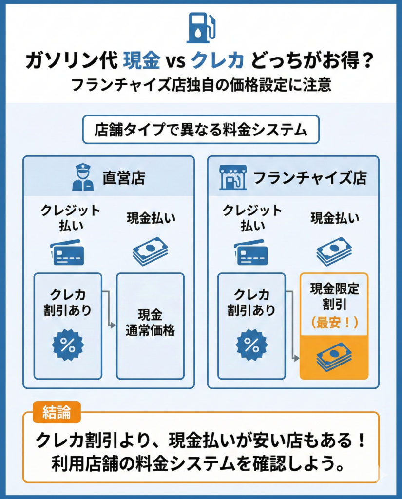 ガソリンスタンドによっては、クレジットカードの割引を含めてもトータルで現金払いの方がお得になるケースもあります。